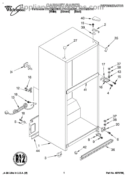 The Hinge Washer is an OEM replacement part for Whirlpool refrigerators. This small washer plays a supports the refrigerator door hinge assembly. Center hinge plastic washer. Causes of a bad hinge washer are generally normal wear and tear from extensive use. As the washer absorbs pressure each time the door is opened or closed, it can gradually deteriorate or crack. Physical damage is also possible if the door is accidentally struck or slammed. Symptoms of a worn or damaged hinge washer include: