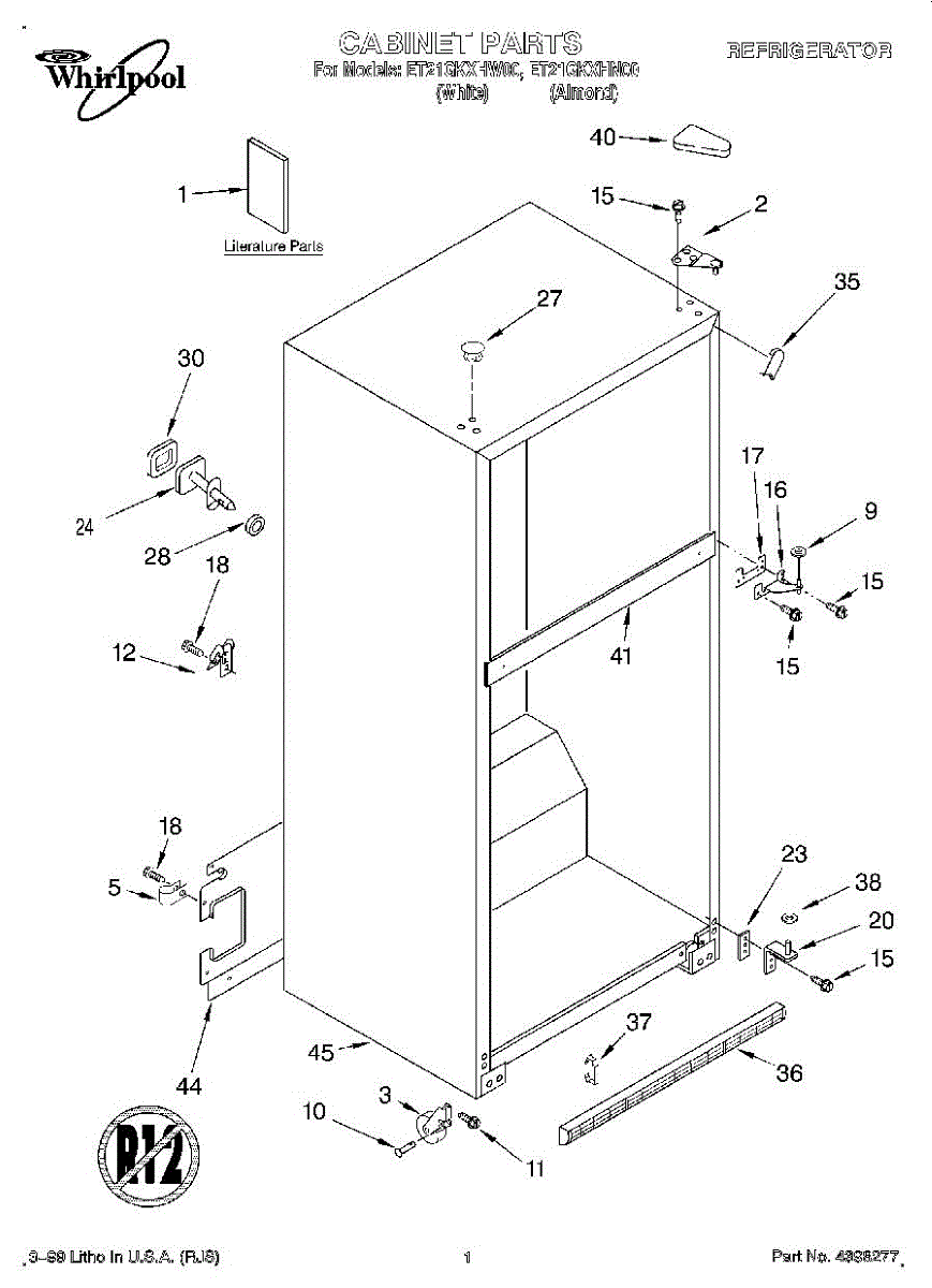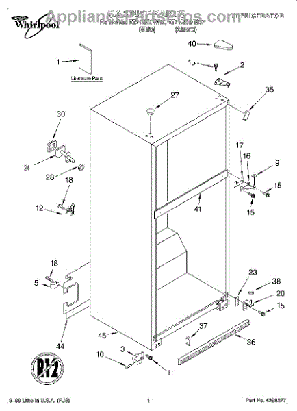 Repair manual for refrigerators and freezers made by Whirlpool. Covered brands include Whirlpool, Sears, Kenmore, Kitchen Aid, Roper, and Estate. Easy to follow photographs and step-by-step repair procedures.