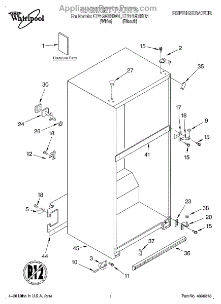 Repair manual for refrigerators and freezers made by Whirlpool. Covered brands include Whirlpool, Sears, Kenmore, Kitchen Aid, Roper, and Estate. Easy to follow photographs and step-by-step repair procedures.