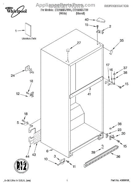 The Hinge Washer is an OEM replacement part for Whirlpool refrigerators. This small washer plays a supports the refrigerator door hinge assembly. Center hinge plastic washer. Causes of a bad hinge washer are generally normal wear and tear from extensive use. As the washer absorbs pressure each time the door is opened or closed, it can gradually deteriorate or crack. Physical damage is also possible if the door is accidentally struck or slammed. Symptoms of a worn or damaged hinge washer include: