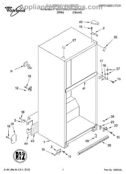The Hinge Washer is an OEM replacement part for Whirlpool refrigerators. This small washer plays a supports the refrigerator door hinge assembly. Center hinge plastic washer. Causes of a bad hinge washer are generally normal wear and tear from extensive use. As the washer absorbs pressure each time the door is opened or closed, it can gradually deteriorate or crack. Physical damage is also possible if the door is accidentally struck or slammed. Symptoms of a worn or damaged hinge washer include: