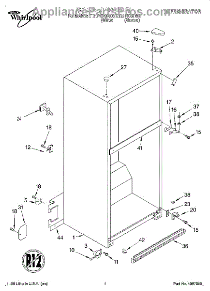 The Hinge Washer is an OEM replacement part for Whirlpool refrigerators. This small washer plays a supports the refrigerator door hinge assembly. Center hinge plastic washer. Causes of a bad hinge washer are generally normal wear and tear from extensive use. As the washer absorbs pressure each time the door is opened or closed, it can gradually deteriorate or crack. Physical damage is also possible if the door is accidentally struck or slammed. Symptoms of a worn or damaged hinge washer include: