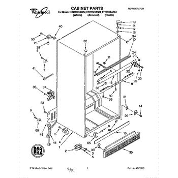 Parts for Whirlpool ET22DKXAW04: 01 - Cabinet Parts