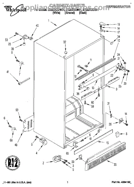 Parts for Whirlpool ET22DKXDB01: 01 - Cabinet Parts