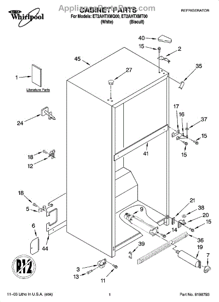 Repair manual for refrigerators and freezers made by Whirlpool. Covered brands include Whirlpool, Sears, Kenmore, Kitchen Aid, Roper, and Estate. Easy to follow photographs and step-by-step repair procedures.