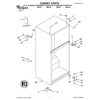 Parts for Whirlpool ET4CSKYKQ02: 01 - Cabinet Parts