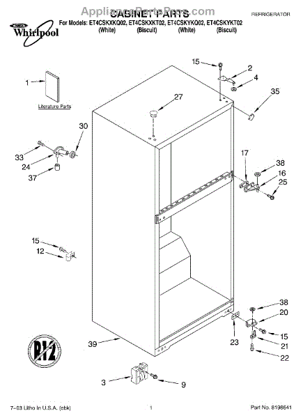 Parts for Whirlpool ET4CSKYKT02: 01 - Cabinet Parts