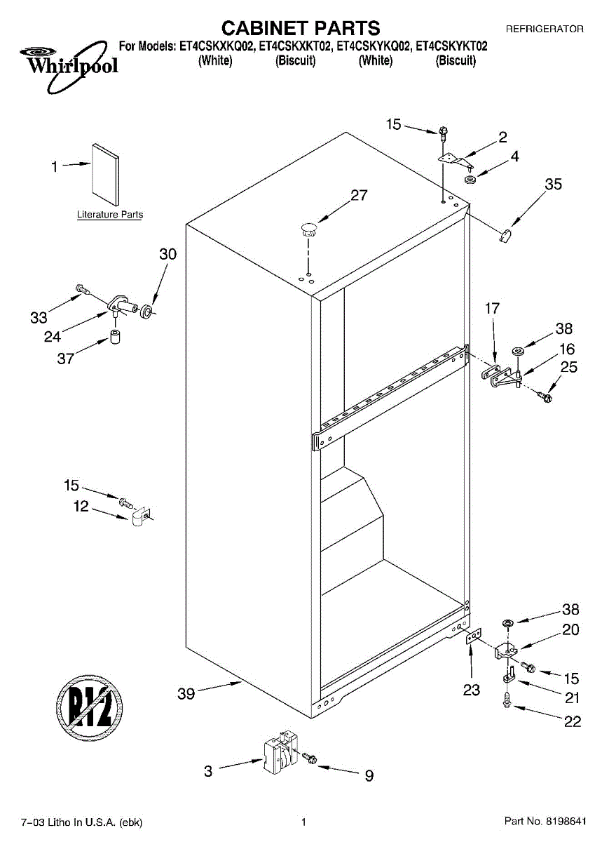 Repair manual for refrigerators and freezers made by Whirlpool. Covered brands include Whirlpool, Sears, Kenmore, Kitchen Aid, Roper, and Estate. Easy to follow photographs and step-by-step repair procedures.