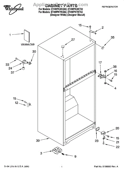 Repair manual for refrigerators and freezers made by Whirlpool. Covered brands include Whirlpool, Sears, Kenmore, Kitchen Aid, Roper, and Estate. Easy to follow photographs and step-by-step repair procedures.