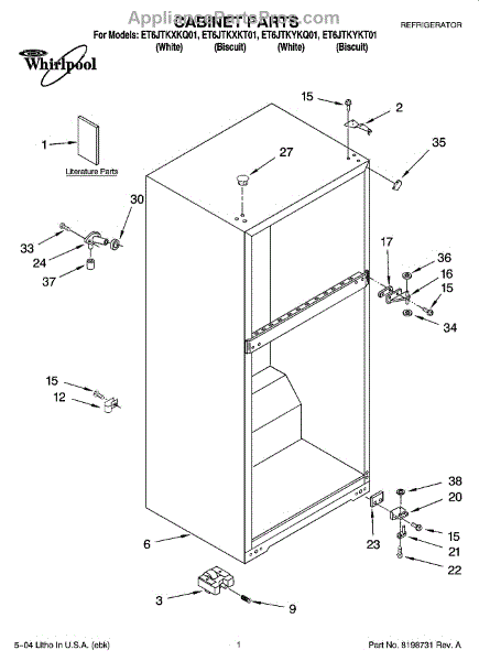 The Hinge Washer is an OEM replacement part for Whirlpool refrigerators. This small washer plays a supports the refrigerator door hinge assembly. Center hinge plastic washer. Causes of a bad hinge washer are generally normal wear and tear from extensive use. As the washer absorbs pressure each time the door is opened or closed, it can gradually deteriorate or crack. Physical damage is also possible if the door is accidentally struck or slammed. Symptoms of a worn or damaged hinge washer include: