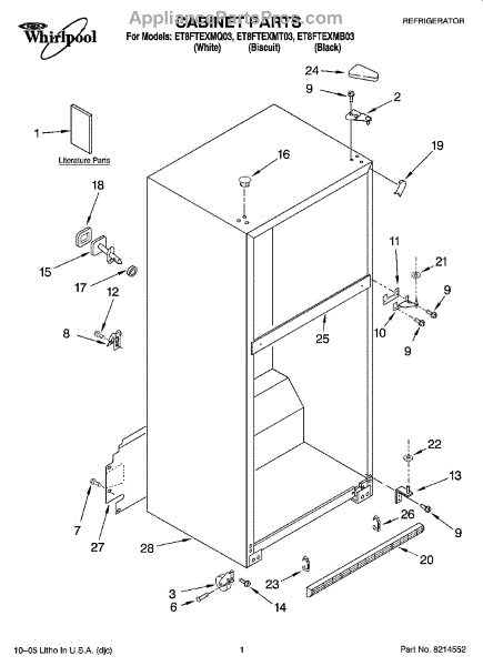Repair manual for refrigerators and freezers made by Whirlpool. Covered brands include Whirlpool, Sears, Kenmore, Kitchen Aid, Roper, and Estate. Easy to follow photographs and step-by-step repair procedures.