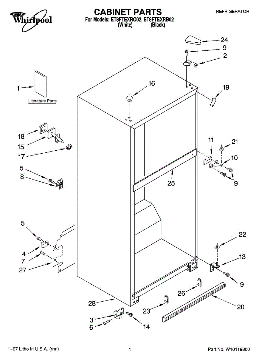 Repair manual for refrigerators and freezers made by Whirlpool. Covered brands include Whirlpool, Sears, Kenmore, Kitchen Aid, Roper, and Estate. Easy to follow photographs and step-by-step repair procedures.