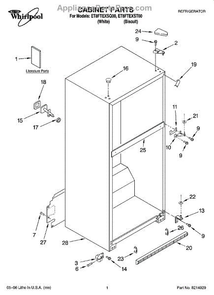 Repair manual for refrigerators and freezers made by Whirlpool. Covered brands include Whirlpool, Sears, Kenmore, Kitchen Aid, Roper, and Estate. Easy to follow photographs and step-by-step repair procedures.