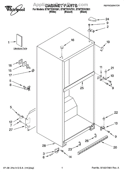Repair manual for refrigerators and freezers made by Whirlpool. Covered brands include Whirlpool, Sears, Kenmore, Kitchen Aid, Roper, and Estate. Easy to follow photographs and step-by-step repair procedures.