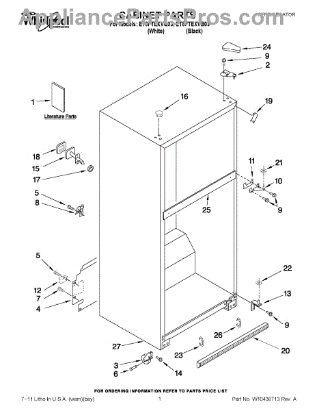 Repair manual for refrigerators and freezers made by Whirlpool. Covered brands include Whirlpool, Sears, Kenmore, Kitchen Aid, Roper, and Estate. Easy to follow photographs and step-by-step repair procedures.
