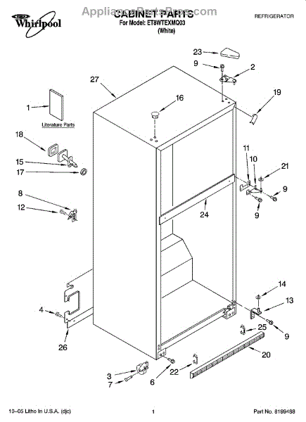 Repair manual for refrigerators and freezers made by Whirlpool. Covered brands include Whirlpool, Sears, Kenmore, Kitchen Aid, Roper, and Estate. Easy to follow photographs and step-by-step repair procedures.