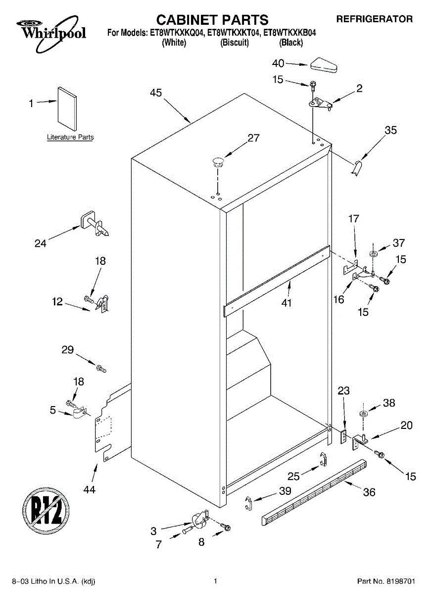 Repair manual for refrigerators and freezers made by Whirlpool. Covered brands include Whirlpool, Sears, Kenmore, Kitchen Aid, Roper, and Estate. Easy to follow photographs and step-by-step repair procedures.