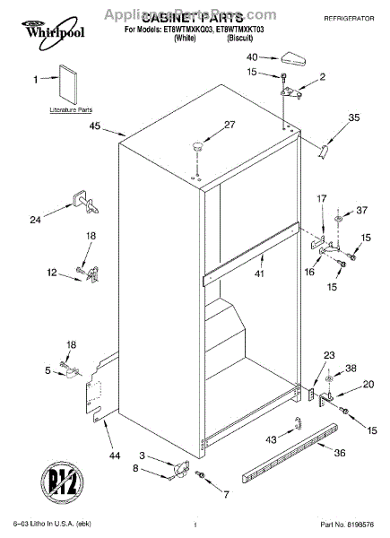 Repair manual for refrigerators and freezers made by Whirlpool. Covered brands include Whirlpool, Sears, Kenmore, Kitchen Aid, Roper, and Estate. Easy to follow photographs and step-by-step repair procedures.