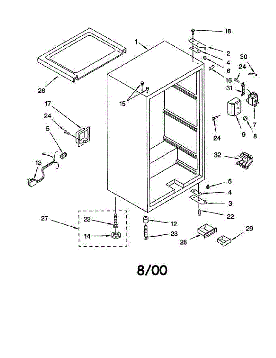 Top door hinge for refrigerators and freezers. Mounts at the top of the door to support swing motion. Replace if cracked, bent, or worn for proper alignment.