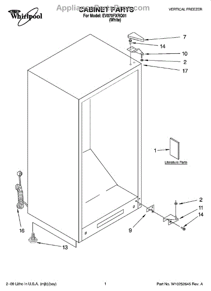 Parts for Whirlpool EV070FXRQ01: 01 - Cabinet Parts