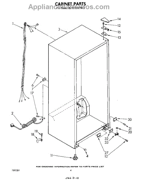 Parts for Whirlpool EV110EXPW0: 04 - Cabinet Parts