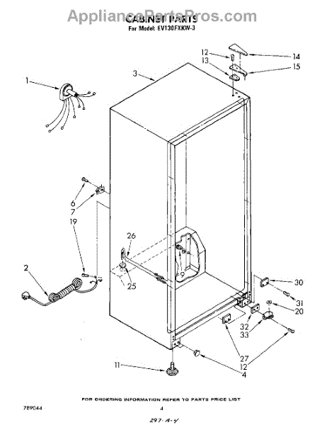 Parts for Whirlpool EV130FXKW3: 03 - Cabinet Parts