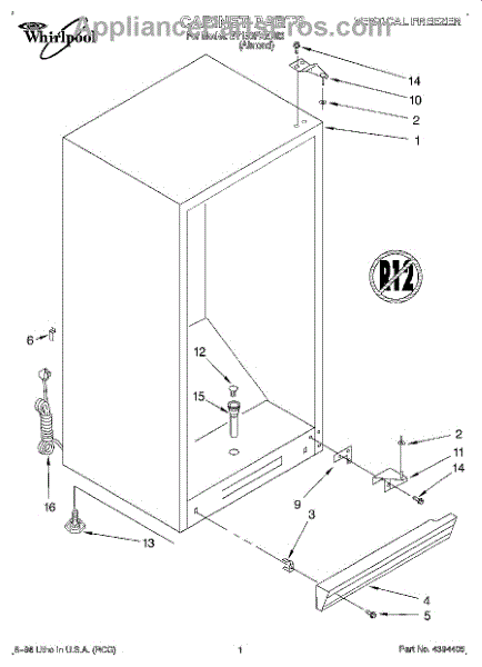 Parts for Whirlpool EV150FXEN02: 01 - Cabinet Parts