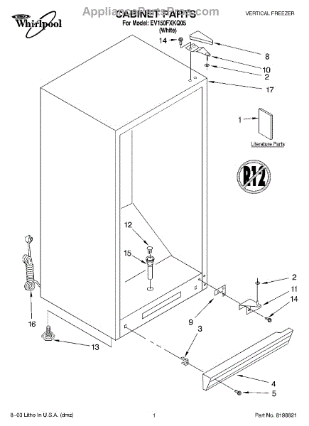 Parts for Whirlpool EV150FXKQ05: 01 - Cabinet Parts
