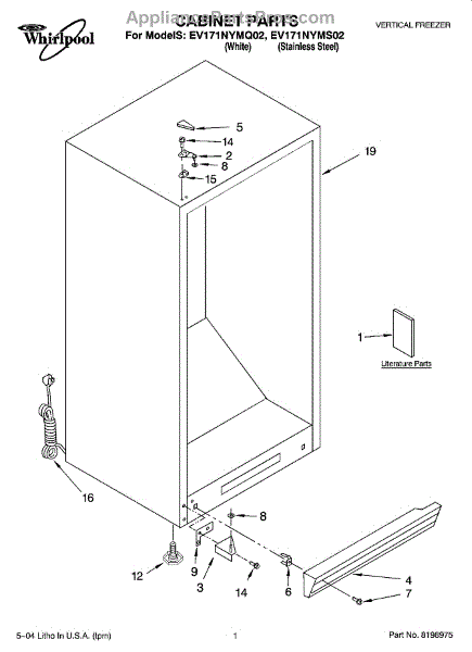 Parts for Whirlpool EV171NYMS02: 01 - Cabinet Parts