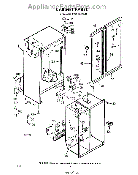 Parts for Whirlpool EVD19JW0: 02 - Cabinet Parts