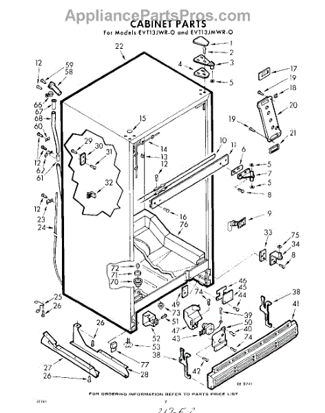 Parts for Whirlpool EVT13JMWR0: 02 - Cabinet Parts