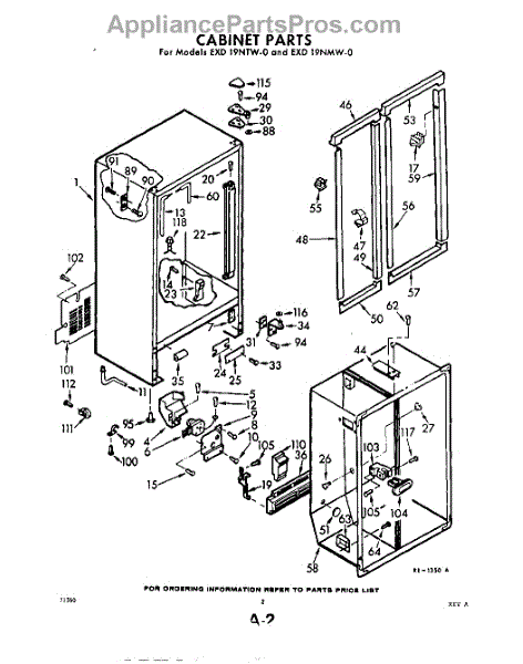 Parts for Whirlpool EXD19NMW0: 02 - Cabinet Parts