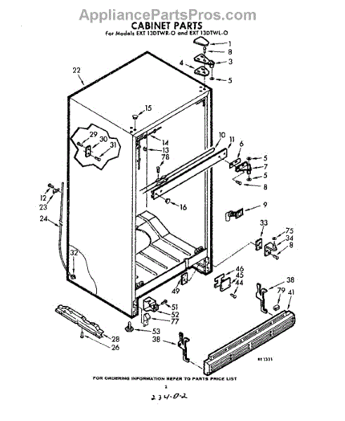 Parts for Whirlpool EXT13DTWR0: 02 - Cabinet Parts