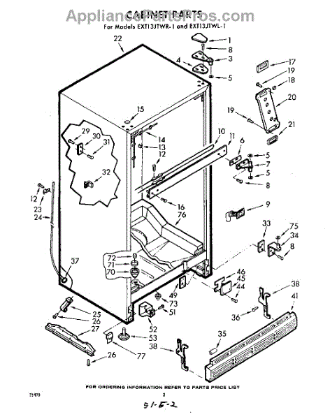 Parts for Whirlpool EXT13JTWR1: 02 - Cabinet Parts