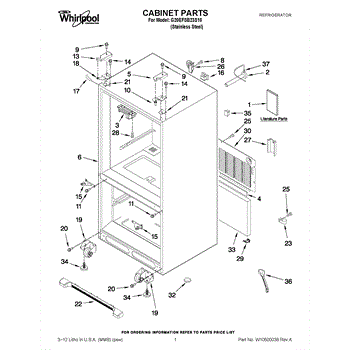 The Leveling Leg is an OEM replacement part for Whirlpool refrigerators. It is one of four legs situated internally at the base corners for proper tilt positioning. It raises or lowers each leg independently to stabilize units on uneven kitchen floors. Causes of replacement consist of wear from continual torque required during positioning processes. Thread damage or corrosion buildup attributable to floor locations over extended use necessitates periodic renewal as well. Symptoms involve: