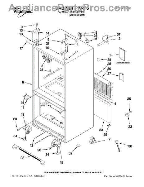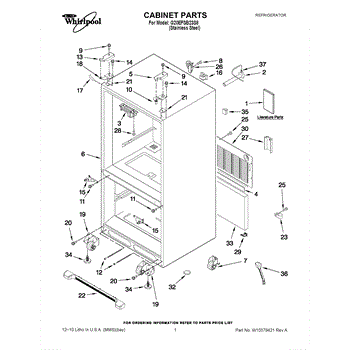 The Leveling Leg is an OEM replacement part for Whirlpool refrigerators. It is one of four legs situated internally at the base corners for proper tilt positioning. It raises or lowers each leg independently to stabilize units on uneven kitchen floors. Causes of replacement consist of wear from continual torque required during positioning processes. Thread damage or corrosion buildup attributable to floor locations over extended use necessitates periodic renewal as well. Symptoms involve: