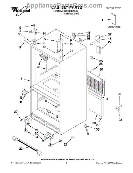 The Leveling Leg is an OEM replacement part for Whirlpool refrigerators. It is one of four legs situated internally at the base corners for proper tilt positioning. It raises or lowers each leg independently to stabilize units on uneven kitchen floors. Causes of replacement consist of wear from continual torque required during positioning processes. Thread damage or corrosion buildup attributable to floor locations over extended use necessitates periodic renewal as well. Symptoms involve:
