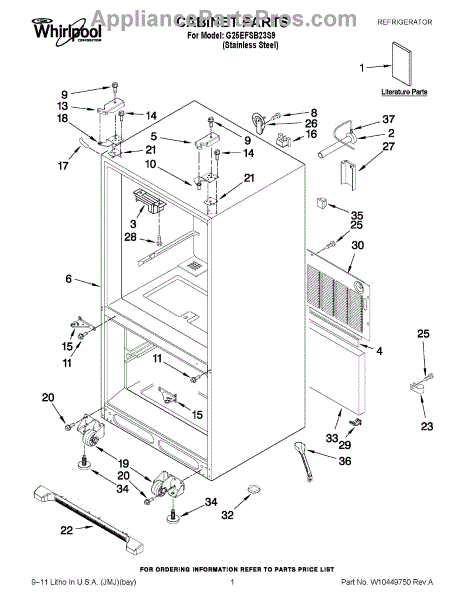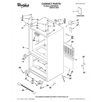 Parts for Whirlpool G25EFSB23S9: 01 - Cabinet Parts