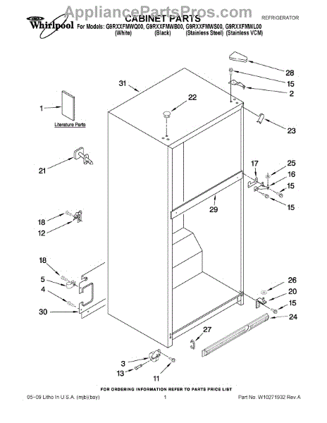 Repair manual for refrigerators and freezers made by Whirlpool. Covered brands include Whirlpool, Sears, Kenmore, Kitchen Aid, Roper, and Estate. Easy to follow photographs and step-by-step repair procedures.