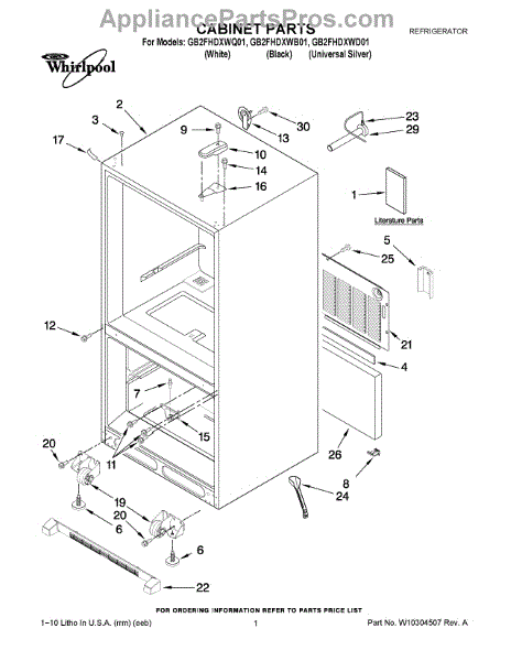 The Leveling Leg is an OEM replacement part for Whirlpool refrigerators. It is one of four legs situated internally at the base corners for proper tilt positioning. It raises or lowers each leg independently to stabilize units on uneven kitchen floors. Causes of replacement consist of wear from continual torque required during positioning processes. Thread damage or corrosion buildup attributable to floor locations over extended use necessitates periodic renewal as well. Symptoms involve: