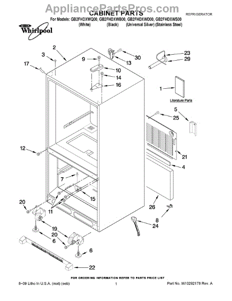Parts for Whirlpool GB2FHDXWS00: 01 - Cabinet Parts