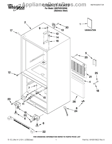 The Leveling Leg is an OEM replacement part for Whirlpool refrigerators. It is one of four legs situated internally at the base corners for proper tilt positioning. It raises or lowers each leg independently to stabilize units on uneven kitchen floors. Causes of replacement consist of wear from continual torque required during positioning processes. Thread damage or corrosion buildup attributable to floor locations over extended use necessitates periodic renewal as well. Symptoms involve: