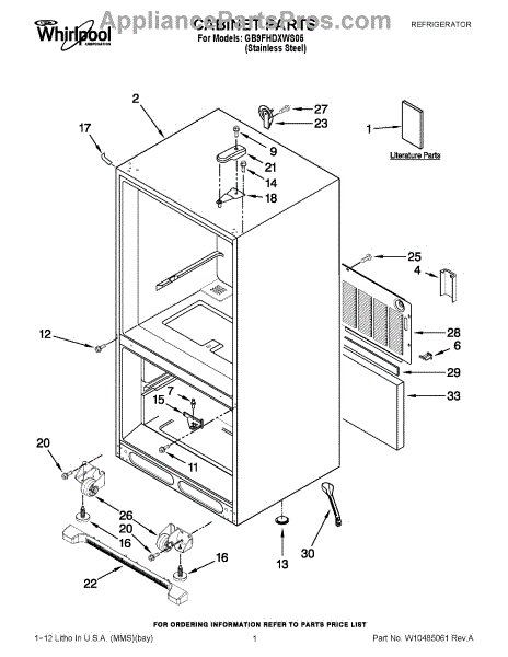 The Leveling Leg is an OEM replacement part for Whirlpool refrigerators. It is one of four legs situated internally at the base corners for proper tilt positioning. It raises or lowers each leg independently to stabilize units on uneven kitchen floors. Causes of replacement consist of wear from continual torque required during positioning processes. Thread damage or corrosion buildup attributable to floor locations over extended use necessitates periodic renewal as well. Symptoms involve: