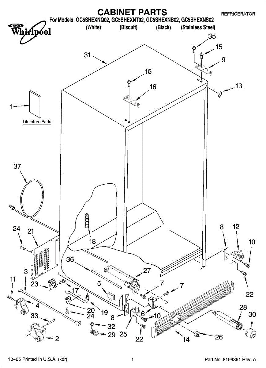 Parts for Whirlpool GC5SHEXNT02: 01 - Cabinet Parts