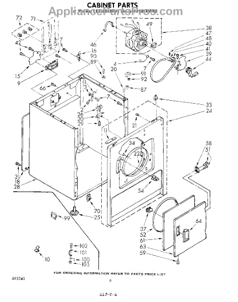 Fits all Whirlpool-made dryers (Whirlpool, Kenmore with prefix 110, Roper, KitchenAid, and Estate). Matching belt 341241 and rear support rollers 349241T. Whirlpool dryer repair manual 677818L.