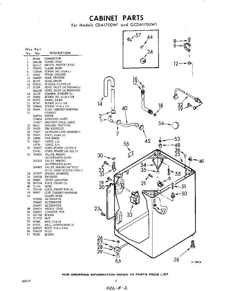 Parts for Whirlpool GCFA2000W0: 02 - Cabinet Parts