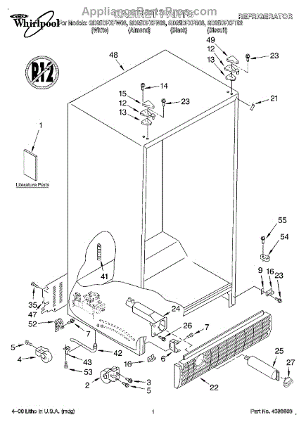 Parts for Whirlpool GD25DFXFW03: 01 - Cabinet, Literature Parts