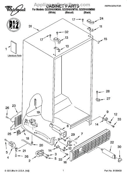 Parts for Whirlpool GD2SHAXMT00: 01 - Cabinet Parts