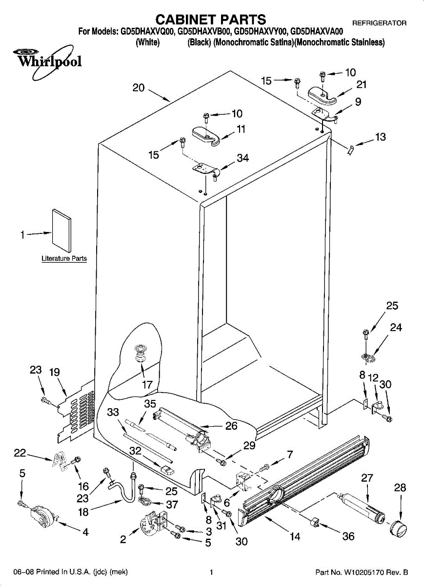 Door hinge for side-by-side refrigerators. Secures and pivots the door for proper opening and closing. Replace if cracked, bent, or worn.