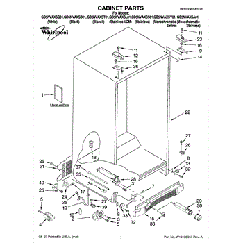 Parts for Whirlpool GD5NVAXSA01: 01 - Cabinet Parts